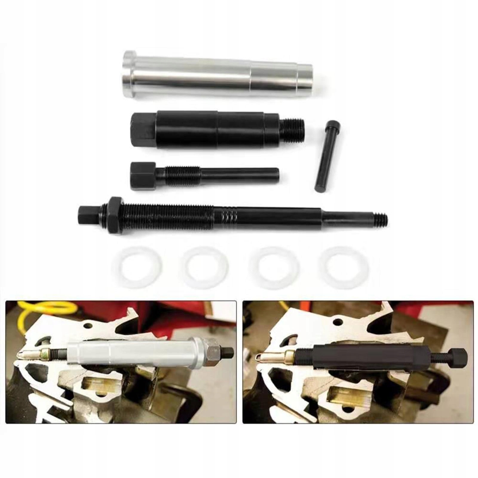 Набір містить унікальний порцеляновий інструмент для штовхання та конічний лівий витягувач нитки, який дозволяє видалити тріснуту свічку запалювання, не залишаючи фарфору в циліндрі двигуна.