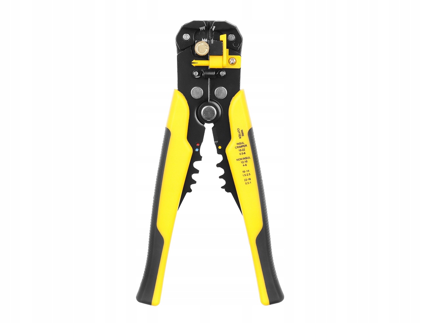 - СПЕЦИФІКАЦІЯ - колір: жовто-чорний; матеріал: хром-ванадієва сталь / PP / TPR; протиковзка накладка: ТАК; механізм: передній, автоматичний; зачистка ізоляції кабелю діаметром: 0,2 - 6 мм² (10 - 24 AWG); обтиск ізольованих клем роз’єму: 0,5–6 мм² (22–10 AWG) та неізольованих: 4–6 мм² (12–10 AWG), 1,5–2,5 мм² (16–14 AWG), 05 - 1 мм² (22-18 AWG); розміри (довжина/ширина/висота): 20/10/3 см; вага: 0,35 кг; вага в упаковці: 0,4 кг.