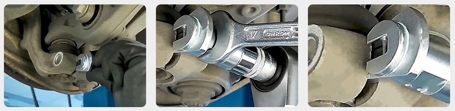 Ефективно розширює амортизатор і кульовий шарнір, дозволяючи відокремити амортизатор від корпусу колісного підшипника.