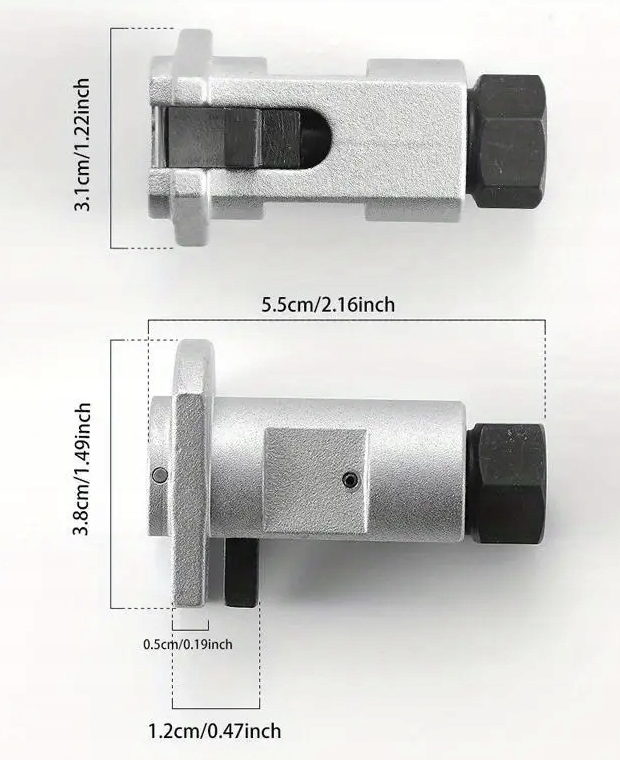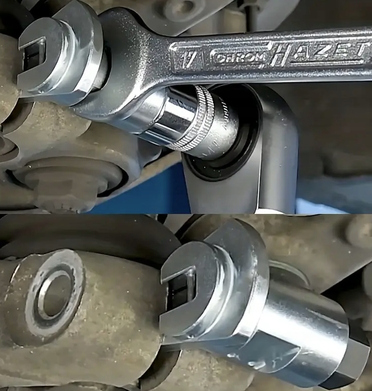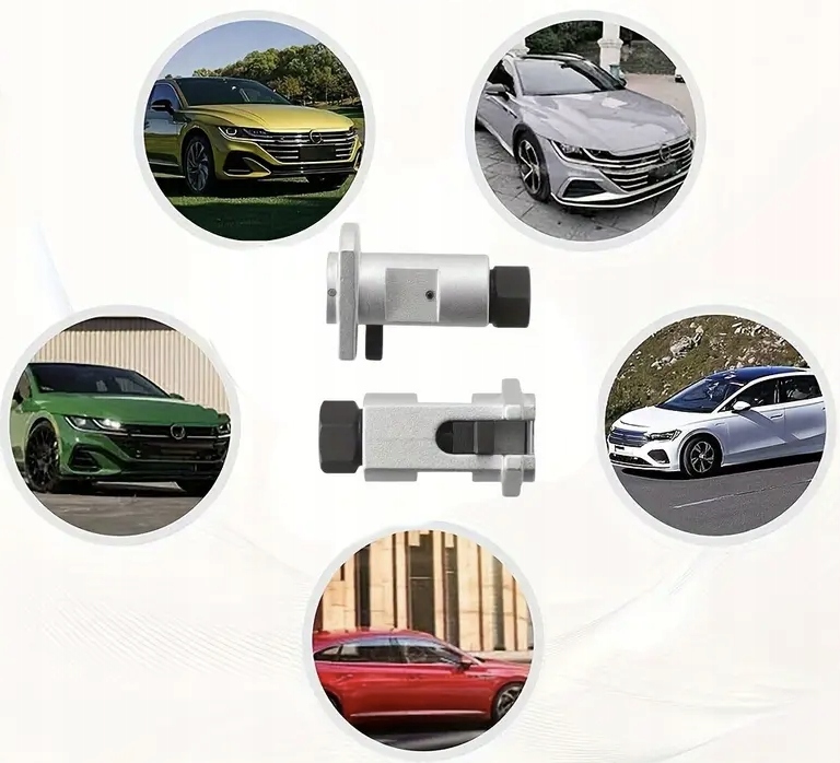 - Інструмент для зняття автомобільного амортизатора і сферичне гніздо підшипника. Він сумісний з автомобілями Volkswagen, Audi, BMW, MINI, Ford, які зазвичай оснащені втулкою з гвинтом.