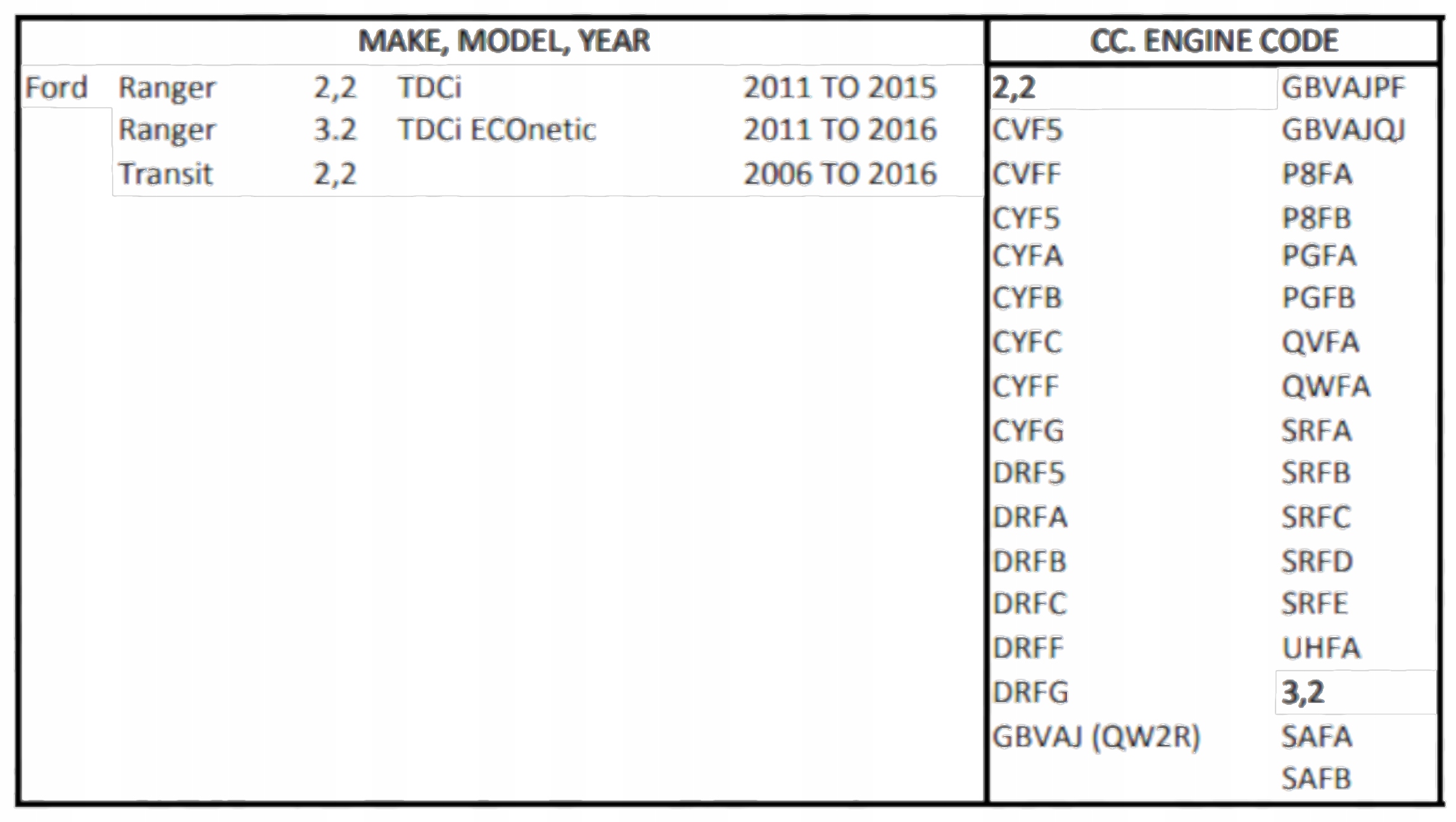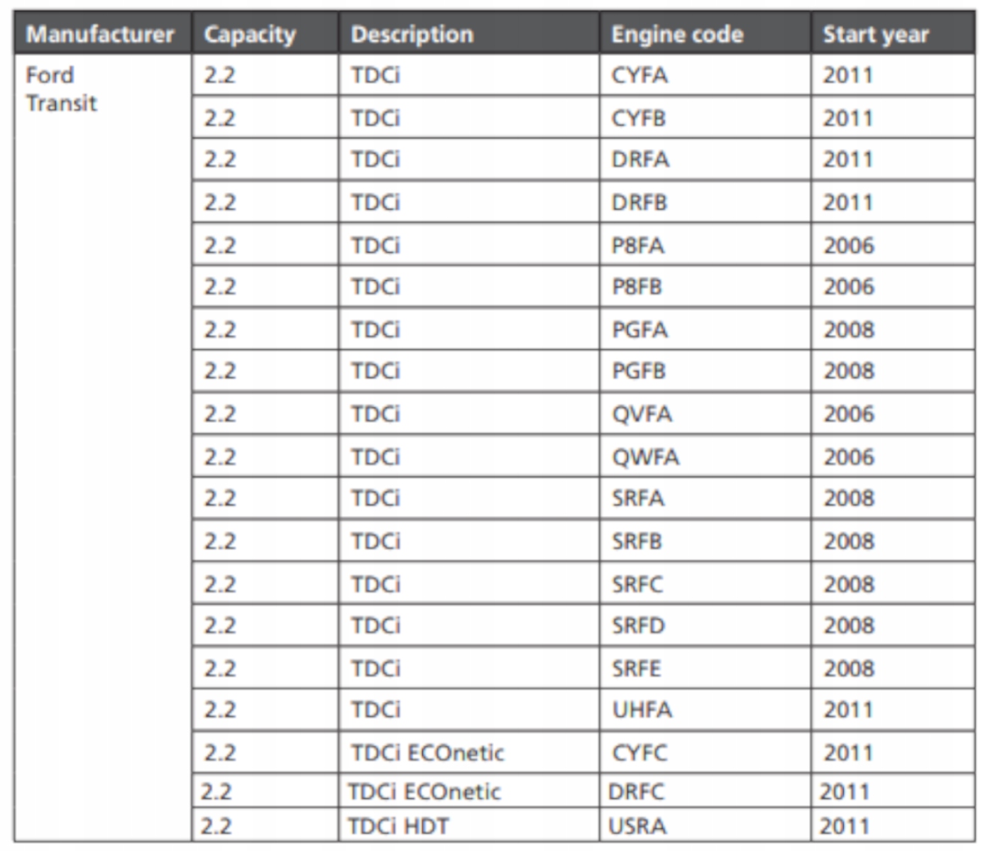 перепустка на Ford Transit 2,2 л TDCI, 2,2 л TDCI ECOnetic і Ford 2,2 TDCI HDT