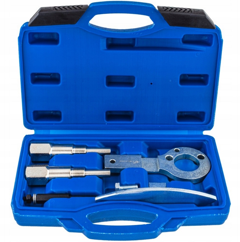 Професійний набір інструментів для блокування розподільних валів і колінчастого вала в дизельних двигунах FIAT, OPEL і ALFA ROMEO. Незамінний при заміні ременя ГРМ, налаштування фаз та інших сервісних роботах. Гарантує точність, безпеку та комфорт роботи