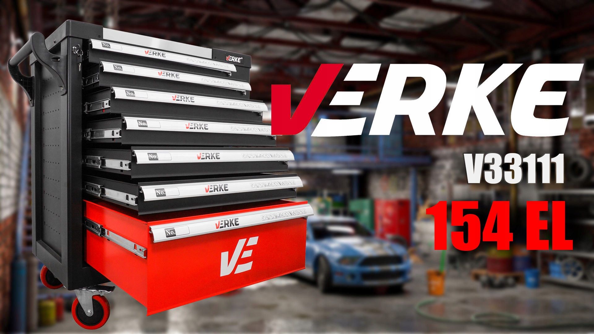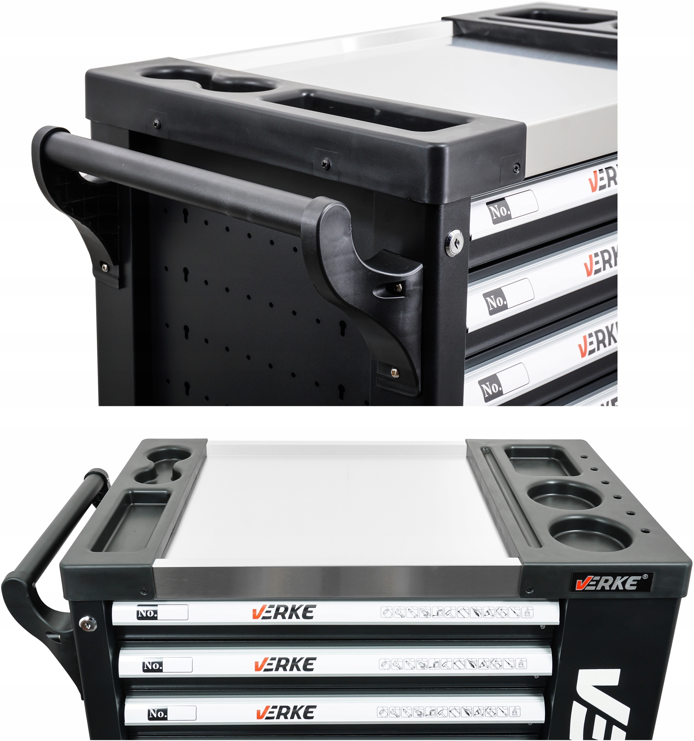 шафа інструментів verke має 7 практичних ящиків для інструментів, закритого центральним замком . Усі ящики повністю відкриті, вони мають кульові путівники , що забезпечують тривалий термін, гладкий і надійний. Закриті двері до замка. свинець.