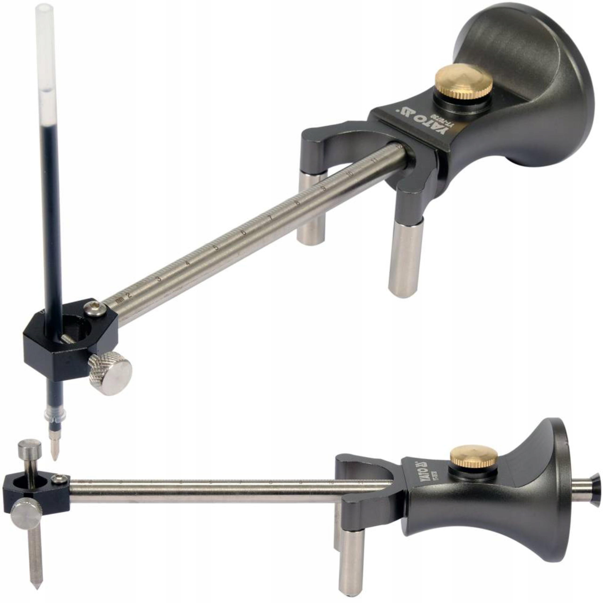 Встановіть руку з ручкою в отвір у корпусі, помістіть маркер / стилус, олівець у ручку на кінці руки / встановіть напрямні ролики на бічний край матеріалу, що обробляється / наприклад, стільниця, дошка або дошка. Притискаючи валики до матеріалу, пересувайте їх по краях. стилус на руці позначає лінію на поверхні.