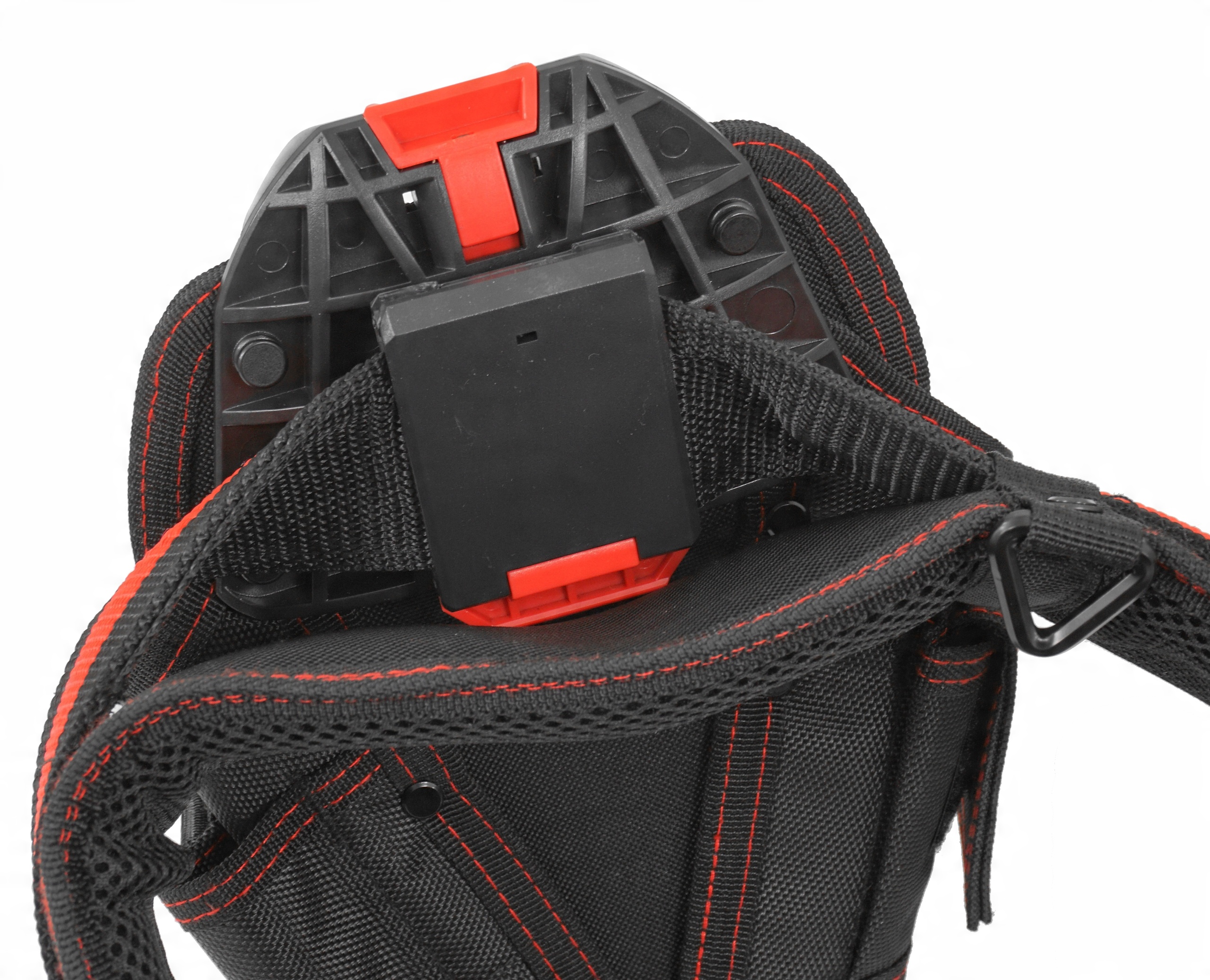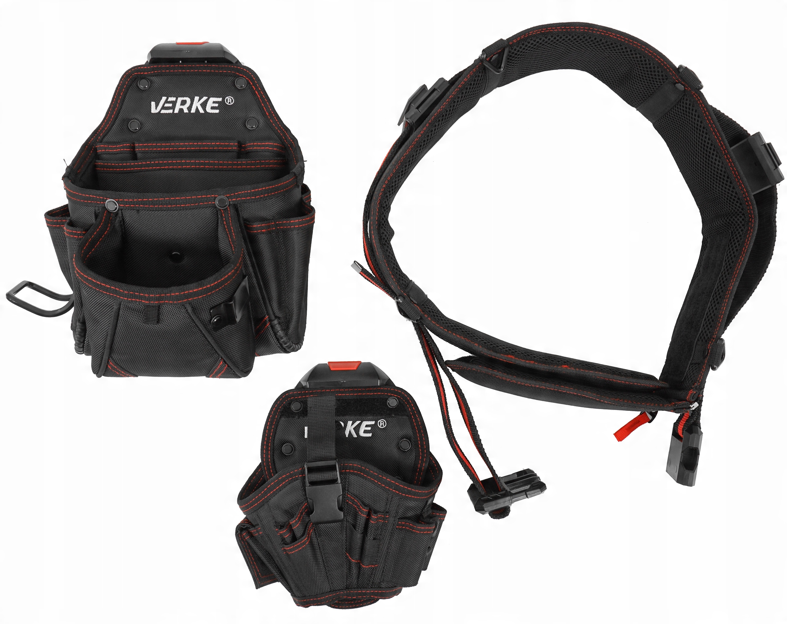 - ВЕЛИКА КІЛЬКІСТЬ КИШЕНЬ - ремінь має різні типи кишень, петель і ручок, які дозволяють зберігати і носіння різних інструментів, таких як викрутки, гайкові ключі, ножиці, вимірювальні стрічки та навіть електроінструменти. Крім того, ремінь має тримач для молотка.