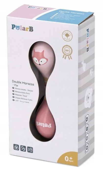 Красиві дерев’яні маракаси, цього разу з серії полярних іграшок, які вам сподобалися із зображенням солодкої лисиці. У цьому виданні парні мають профілену ручку посередині, завдяки чому, трясучи їх, звук виходить з двох сторін. Цікаве рішення, барвисті рожеві кольори та, перш за все, низька ціна та добре підготовлений розмір для руки малюка, зроблене продукт може бути фантастичною ідеєю подарунка під час першого візиту :)