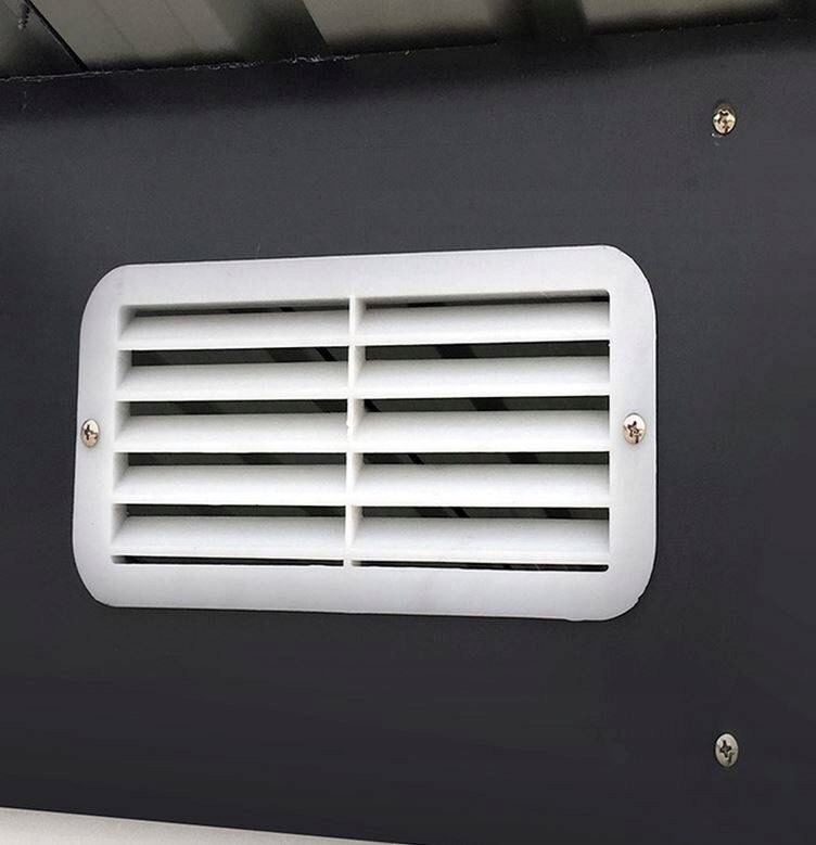 Вентиляційні решітки, встановлені в передній і задній частинах будівлі, запобігають конденсації води та утворенню корозії або цвілі, які можуть знищити речі, що зберігаються.