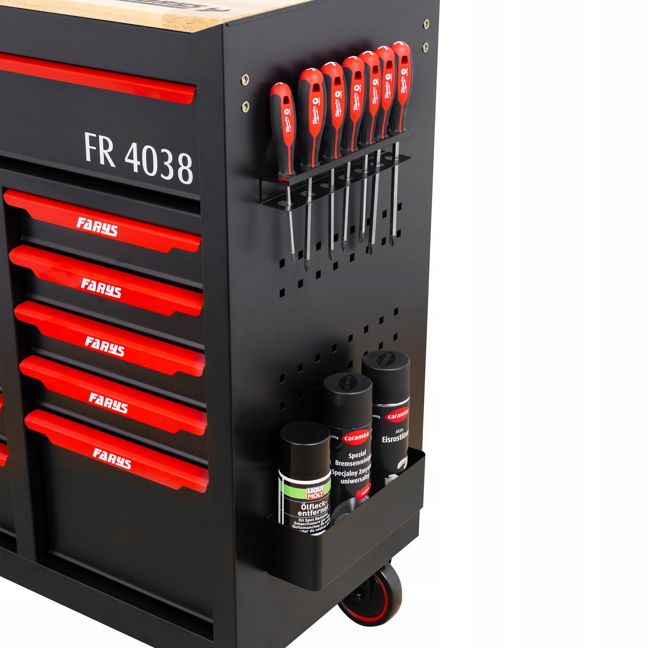 Суцільна, професійна майстерня таблиця FR4038 - ідеальне рішення для гаража, майстерні або виробничого заводу. Він забезпечує максимальну організацію та простий доступ до інструментів, визначаючи довговічність та мобільність. Ця суцільна коляска оснащена дерев’яним верхом, над якою встановлена перфорована стіна з 20 гачками та ергономічною ручкою, яка може бути встановлена з обох боків, що забезпечує максимальну зручність використання.