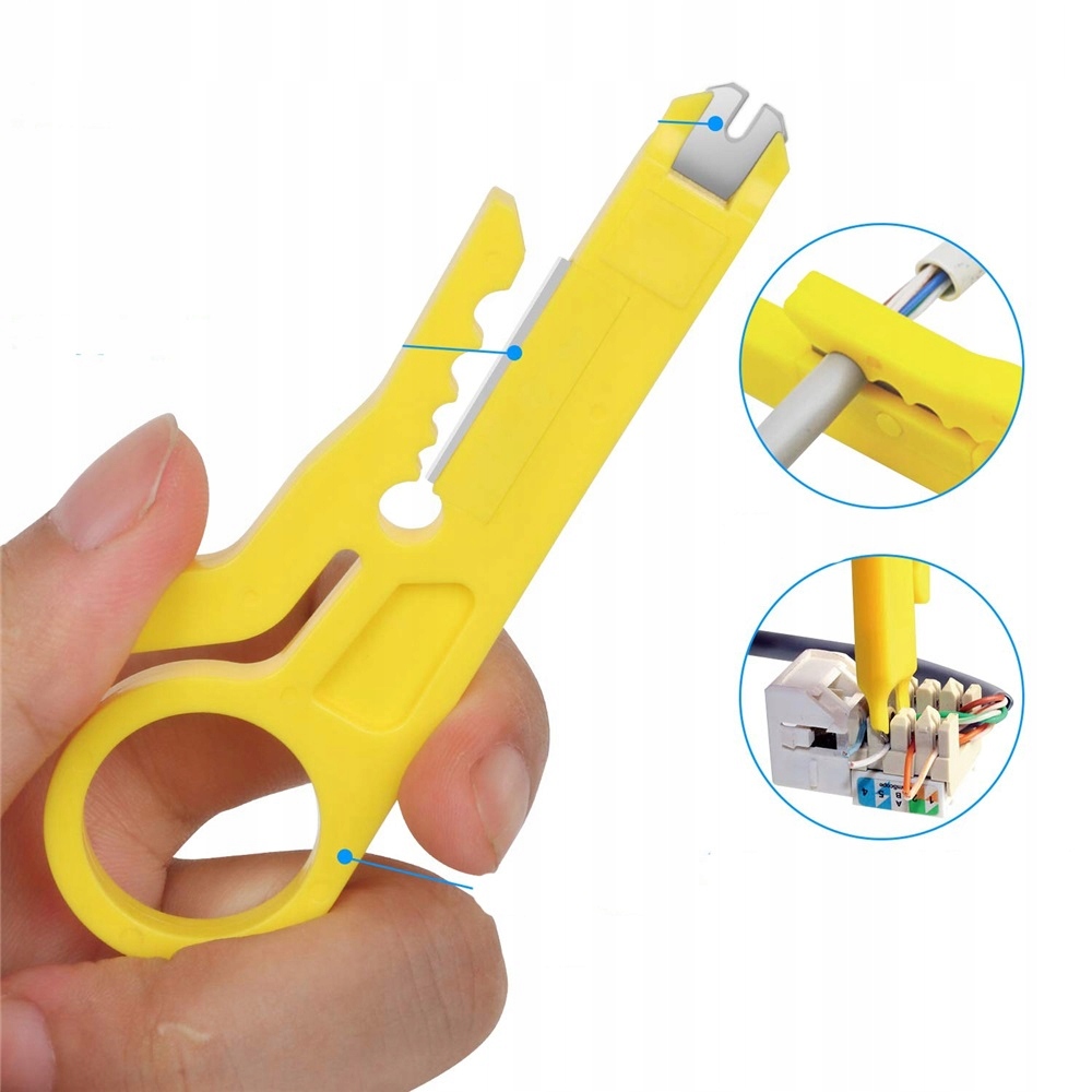 • Універсальне використання : затягнеться, знімає та вирізає кабелі до RJ45, RJ11, RJ12 та CAT5/CAT5E PLOWINS