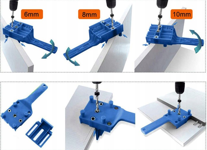 Пристрій забезпечує відмінну точність отворів, що істотно впливає на зовнішній вигляд і естетичність отворів b> меблів/конструкцій. Завдяки штифту ми можемо центрувати отвір у матеріалі товщиною до 30 мм.