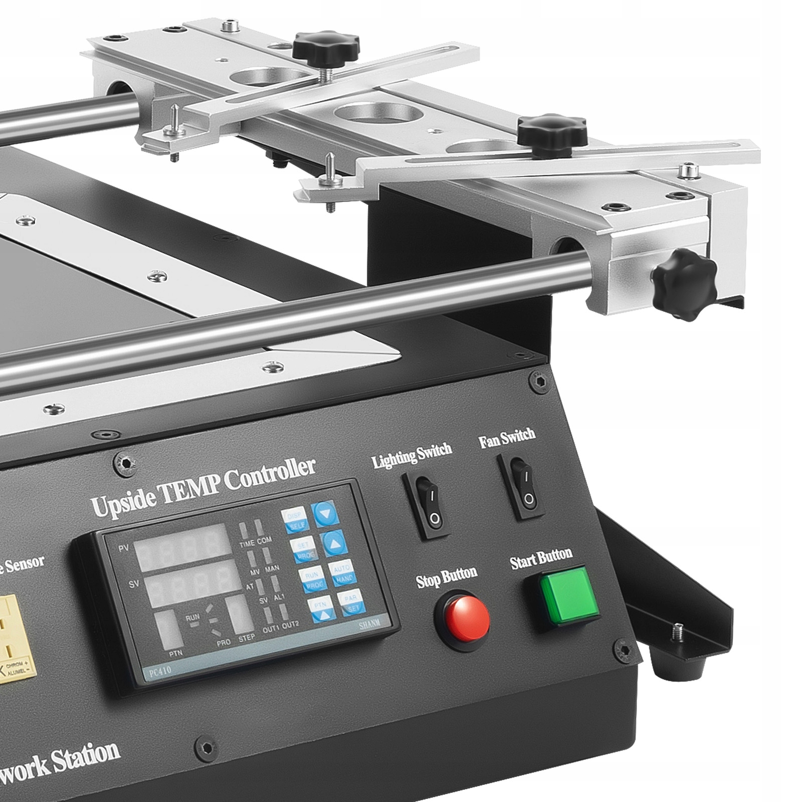 - Довге життя: алюміній та залізо високої якості з окисленням та розпиленням роблять продукт твердим, стійким до зносу, корозією, іржею, міцним та міцним. Тим не менш, на загальну інфрачервону переробну станцію легко впливають потік повітря, що призводить до неточного контролю температури і може легко впоратися з переробкою розв'язаної пайки. Температурні нагрівачі та чутливі датчики вимірювання температури температура робочого процесу можна легко та точно контролювати. Крім того, технологія контролю температури у закритому циклі забезпечує точні температурні процеси та рівномірний розподіл тепла. 4 Його лінійний посібник з полюсами нерівностей можна регулювати та заблокувати, повертаючи ручку, і дуже зручно виправити друковану плату, що може ефективно запобігти деформації плитки PCB. 4