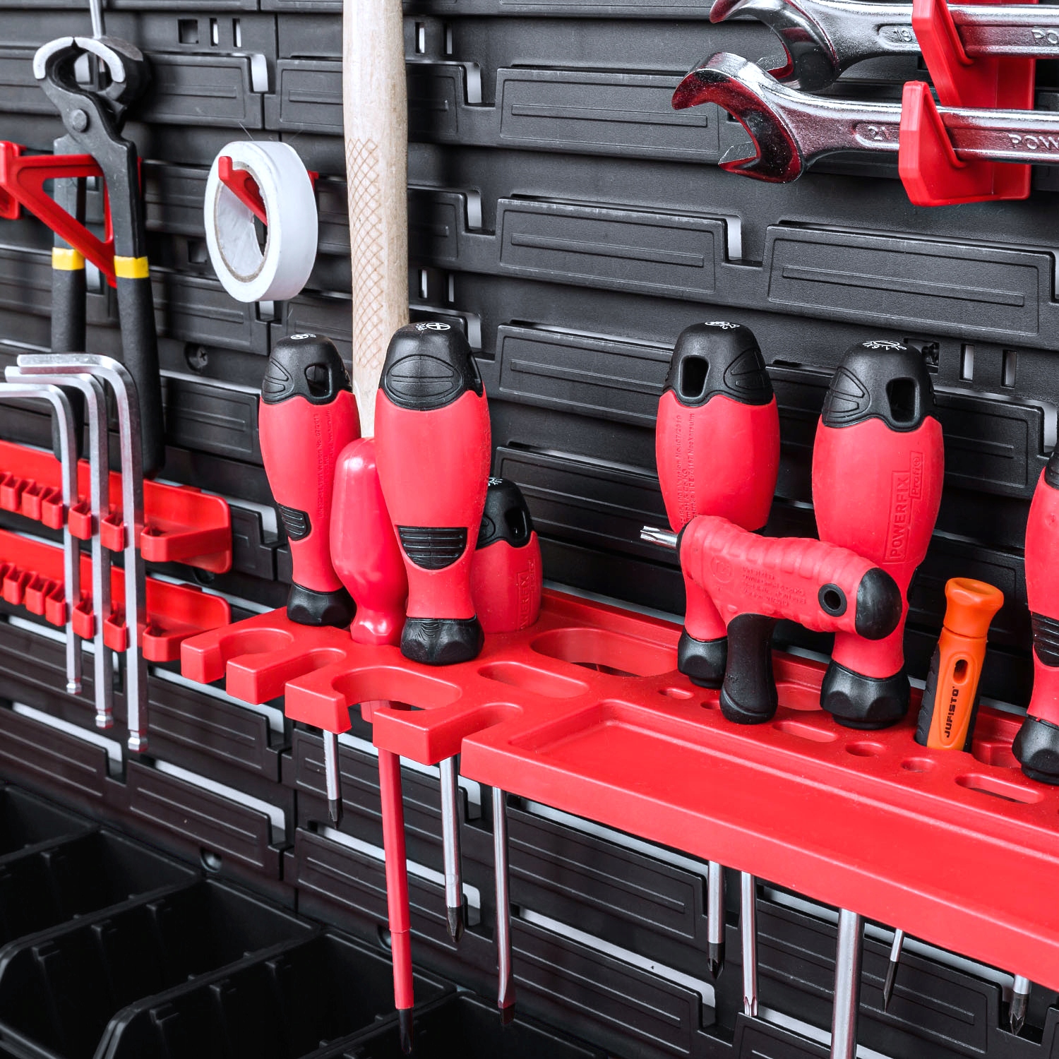 На стіні, яку ми пропонуємо, є все, що потрібно кожному професіоналу - тримачі для інструментів і контейнери для зберігання різних типів гвинтів, гайок тощо.