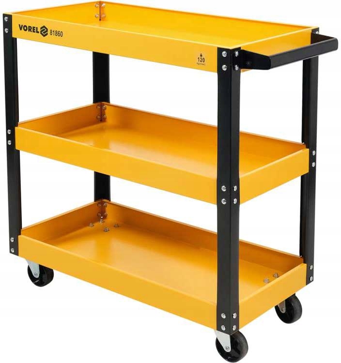 Практичний трирівневий візок для майстерні вантажопідйомністю120 кг. Завдяки цьому інструменти, необхідні для роботи, завжди у вас під рукою.