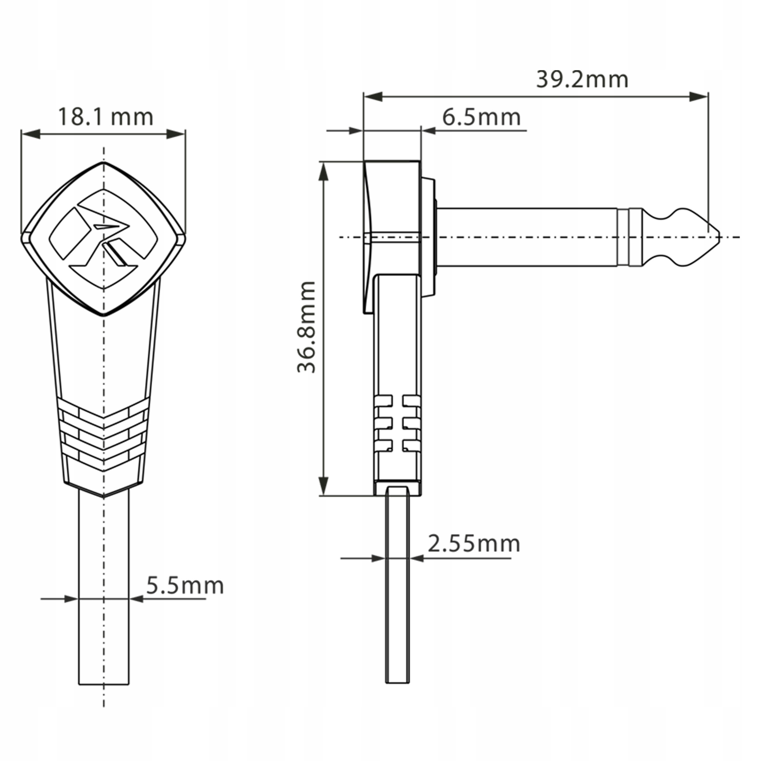 Оснащений < b >два кутових роз’єми 6,3 мм, які завдяки своїй формі дозволяють зменшити простір між такими пристроями, як гітарні ефекти з ножним керуванням або педалборди.