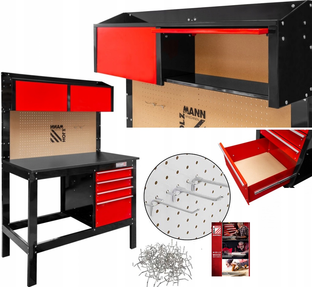 Універсальний робочий стіл WT39 має велику стільницю з МДФ на міцній металевій листовій конструкції з 20 гачками для кріплення на задній частині столу та три ящики для аксесуарів під робочим столом і два місткі ящики під робочим столом. робочий стіл.