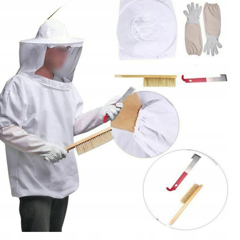 Упаковка містить: комбінезон для бджільництва, рукавички для бджільництва, пензлик бджоли та скребки, зручні та практичні.