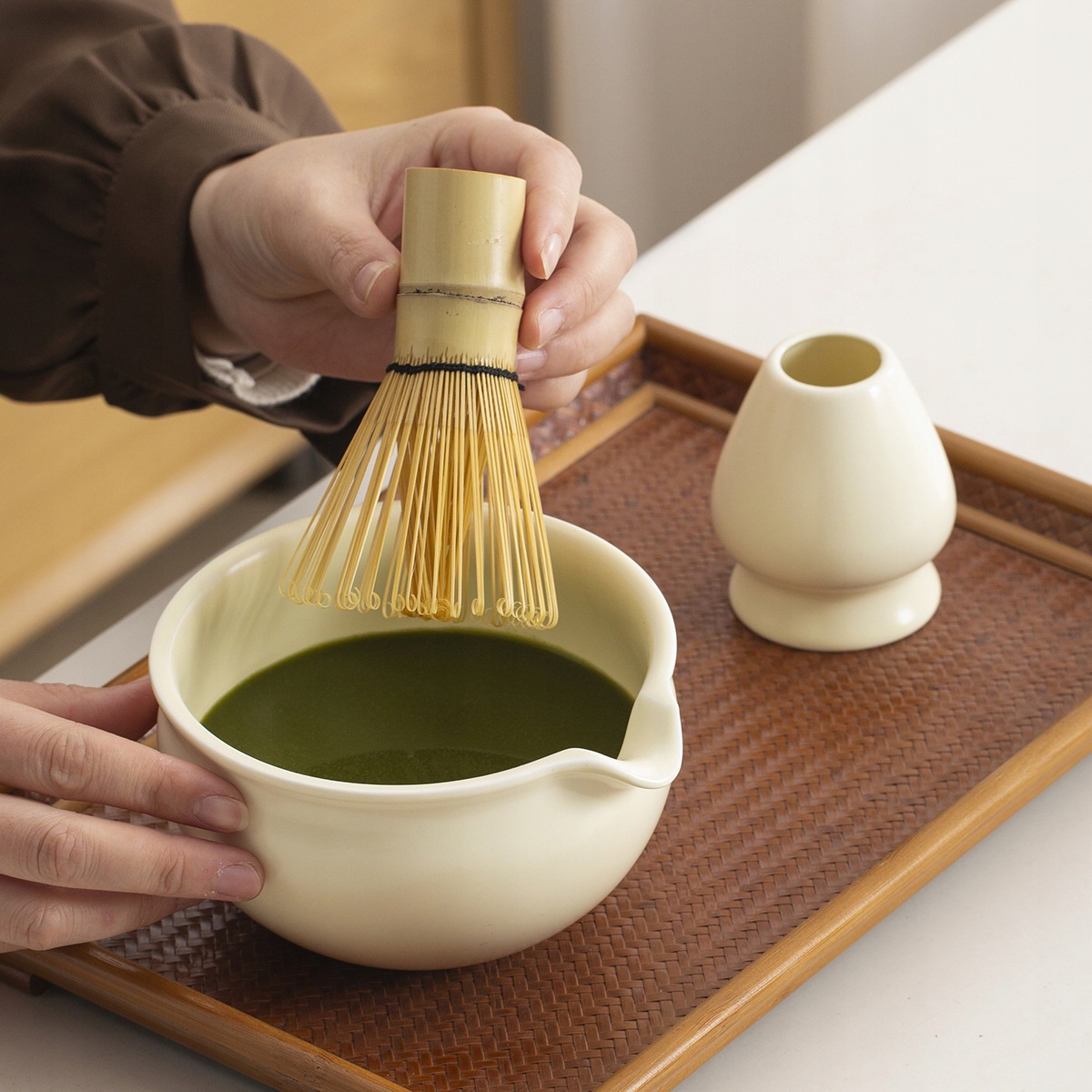 Інструменти для матчу, миска, підставка для віночка для чаю, кремовий і жовтий