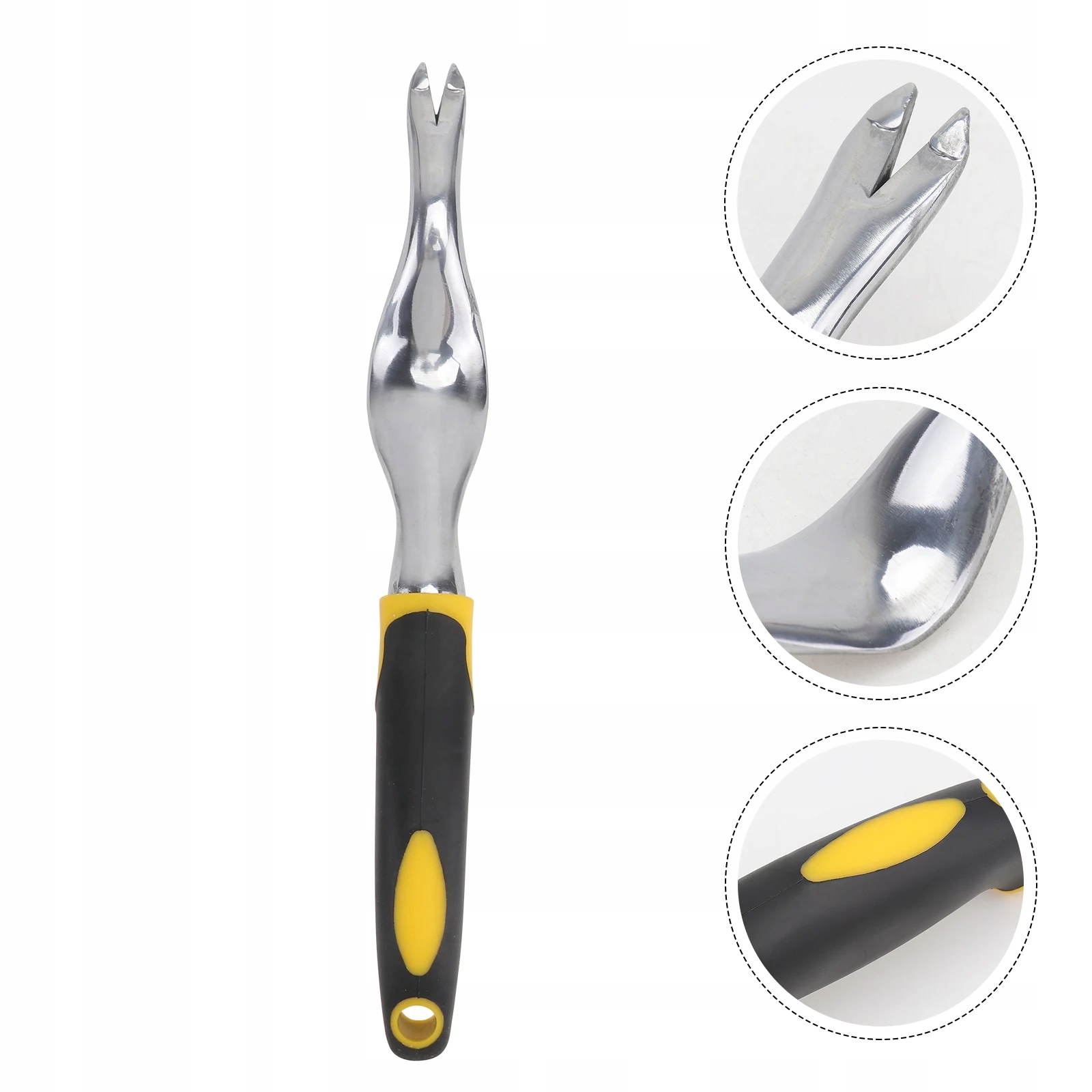 ✅Це вилка для бур’янів, виготовлена з литого під тиском алюмінію, яка не згинається та не тріскається, і має стійке до іржі покриття. Роздвоєний наконечник з двома зубцями вириває траву з корінням для остаточного видалення та довготривалого захисту. Він має ергономічну та зручну гумову ручку, яка ідеально підходить для дітей, дорослих і людей похилого віку.