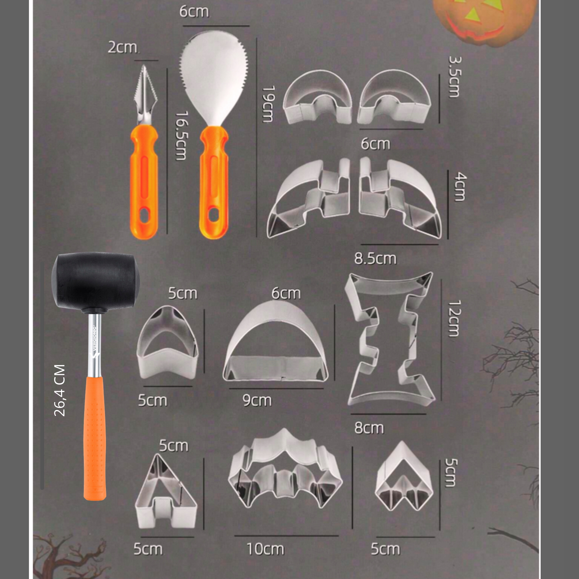 ІНСТРУМЕНТИ ДЛЯ РІЗЬБЛЕННЯ ГАРБУЗА 10 ФОРМ МОЛОТОК НОЖ НАБІР DIY =