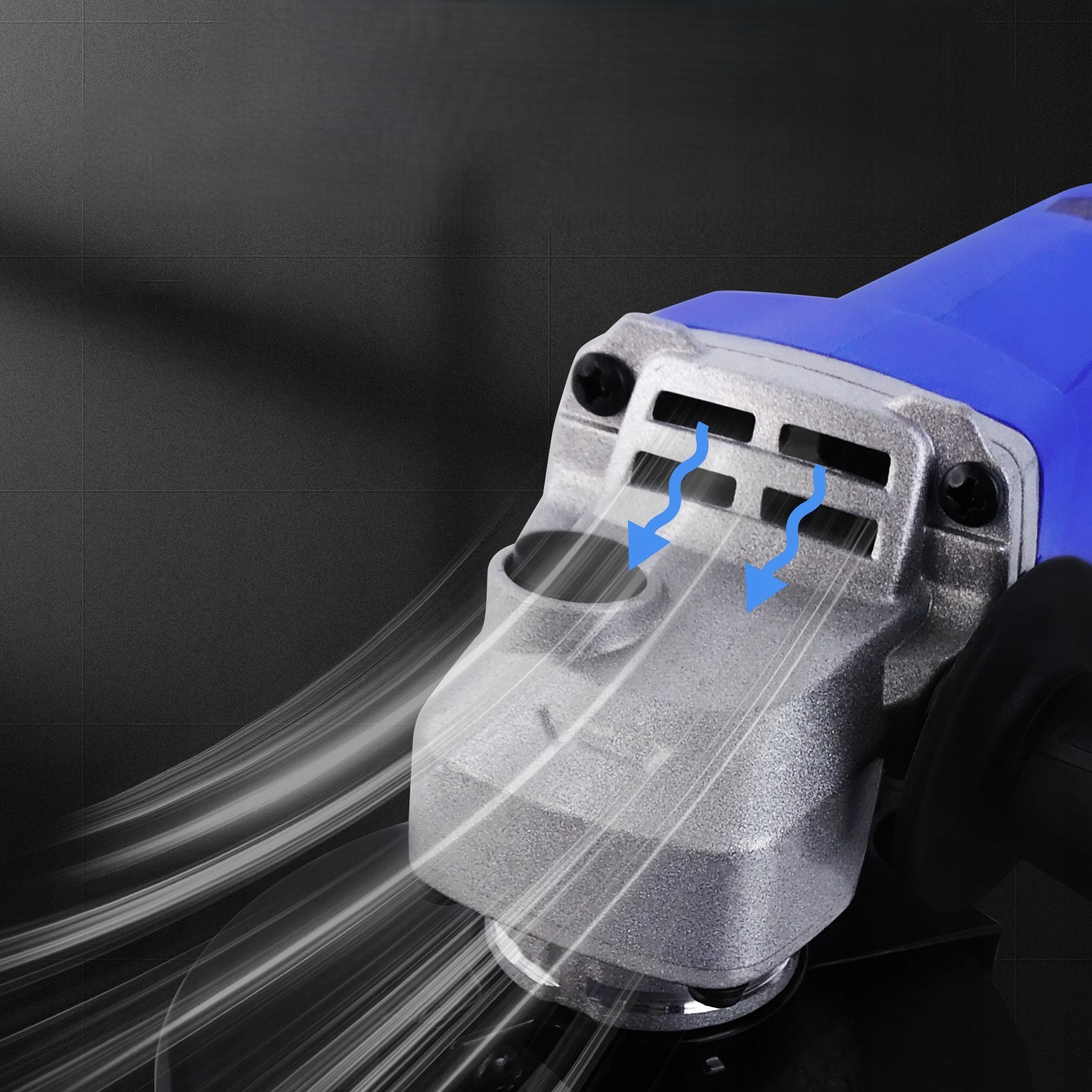 --Ця кутова шліфувальна машина має високопродуктивний двигун зі швидкістю холостого ходу до 12 000 обертів за хвилину, легко справляючись із важкими завданнями, такими як різання та шліфування.