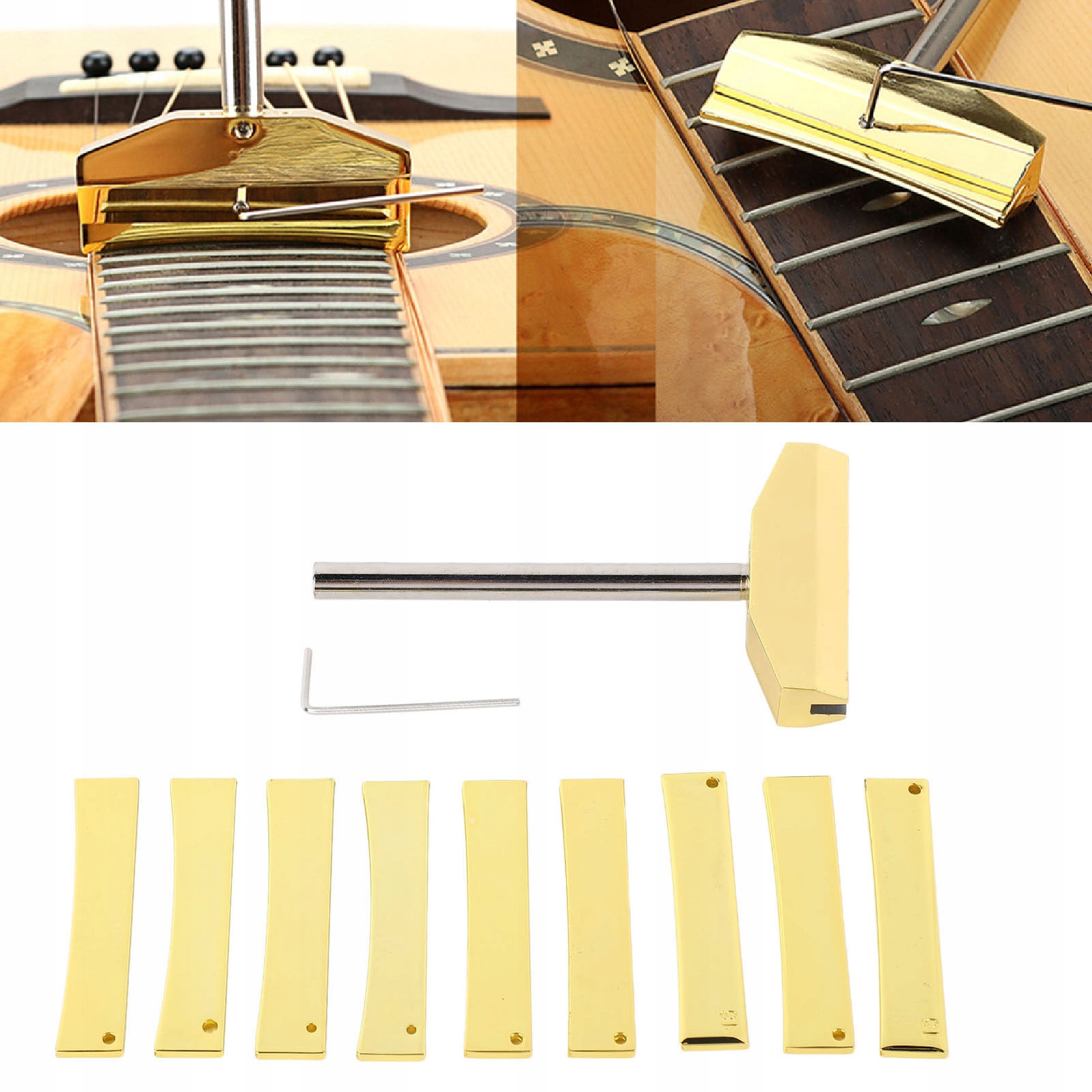 1. Специфікація: Набір електричних гітарних інструментів містить інструмент для натискання металевих порогів, 9 штук пресування вставки та клавіші, прості та практичні. Металевий матеріал: Ці засоби для ремонту виготовлені з чудового металу, з хорошою міцністю та стійкістю до стиску, які є стабільними та надійними. Багато розмірів: оснащені 9 прес -вставками різного розміру для адаптації до розміру та викривлення різних порогів гітару для підвищення точності. Легка експлуатація: Просто покладіть вставку на тиск у місце, де він потребує ремонту, а потім використовуйте помірний тиск із блоком тиску. Золотий вигляд: Ці обтиски та вставки є золотими і мають блискучий вигляд, що додає привабливості та прикраси.