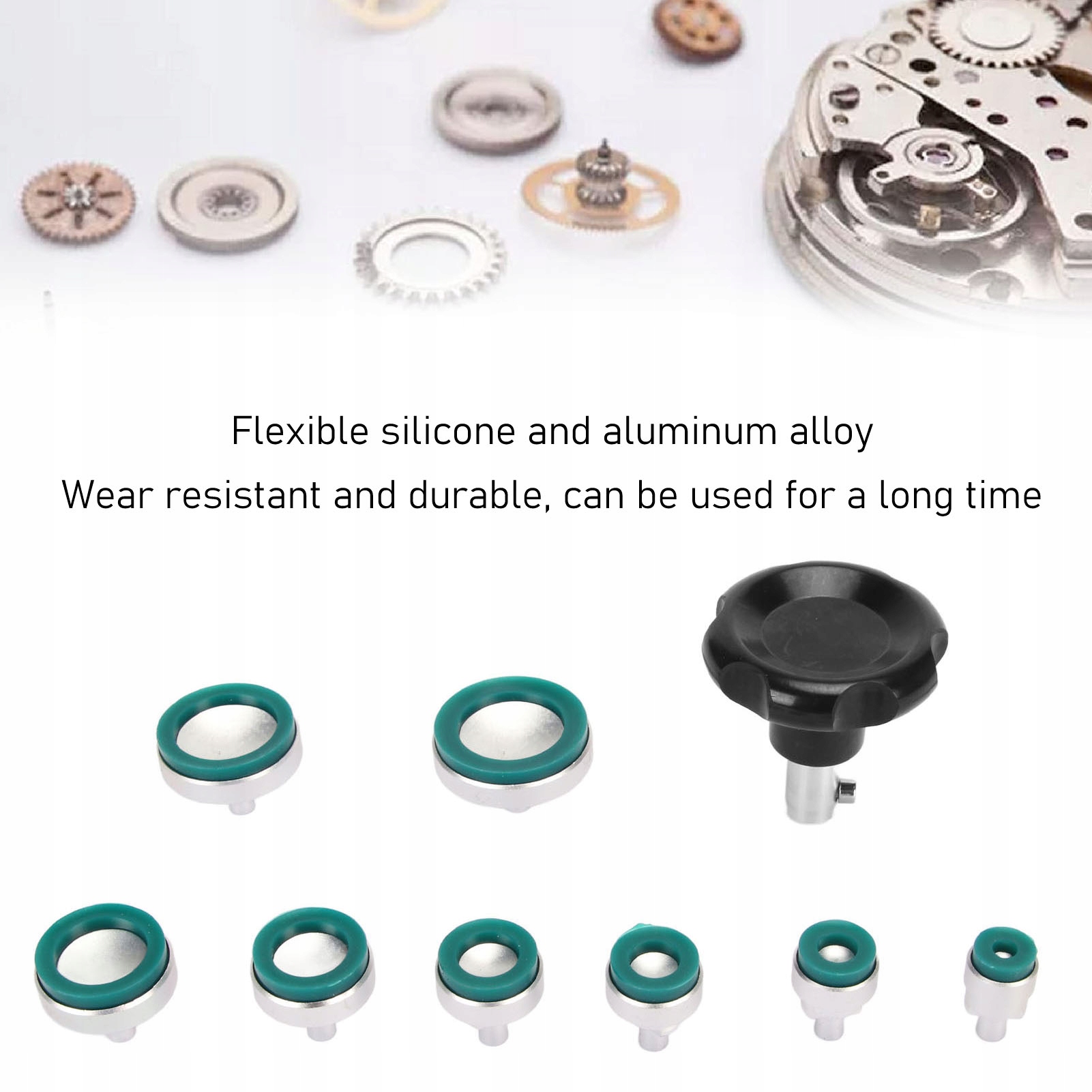 4. Матеріали преміум-класу: виготовлений з гнучкого силікону та алюмінію преміум-класу інструмент для ремонту годинників зносостійкий, міцний і може використовуватися протягом тривалого часу. Це ідеальний інструмент для заміни кристалів годинника та замикання корпусу, що забезпечує вашу зручність під час використання.