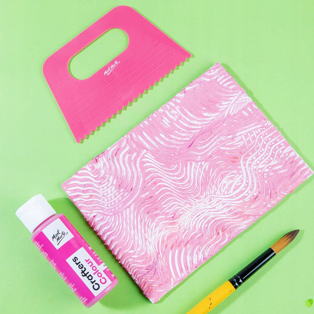 - Включає 4 фарбувальні гребінці з різними текстурними візерунками