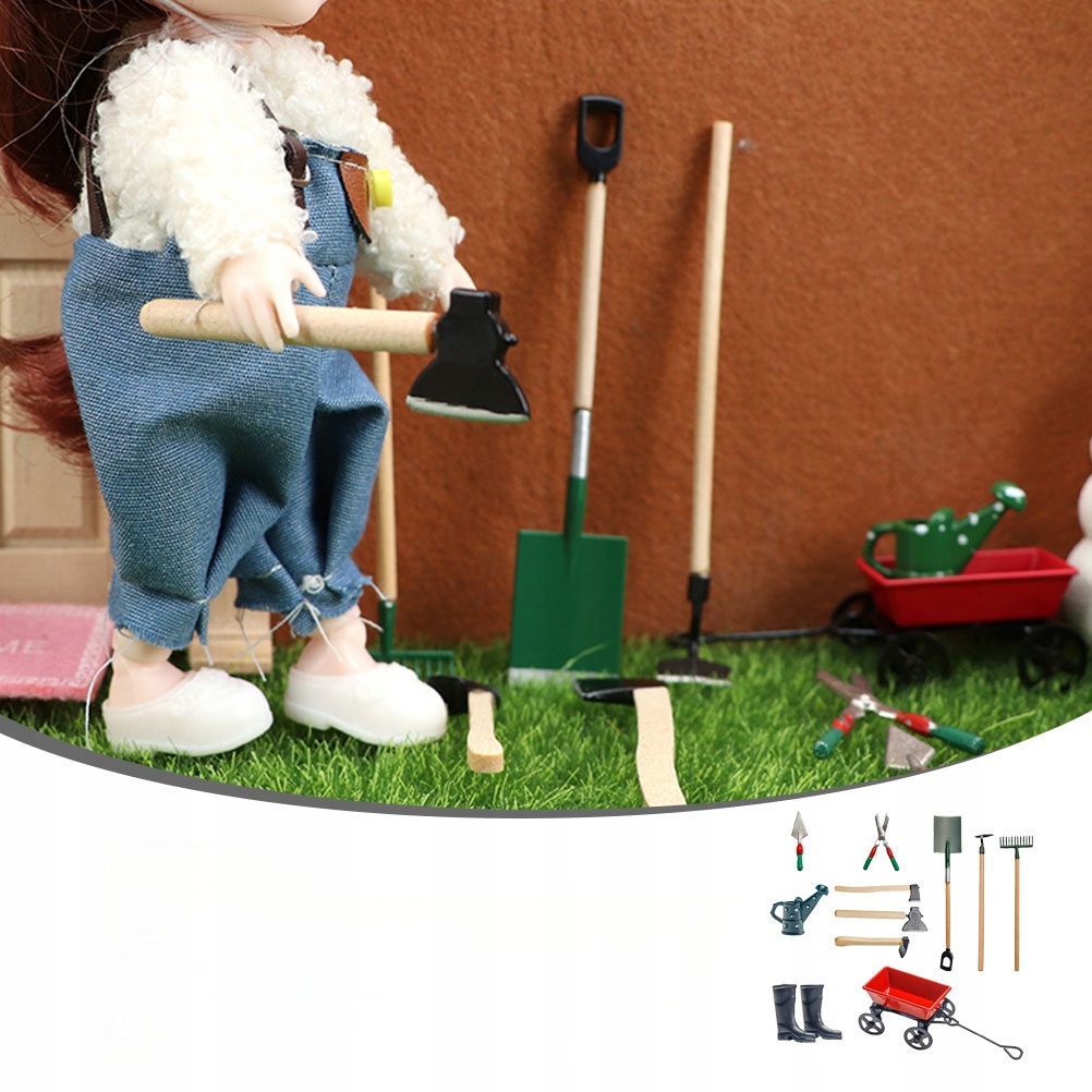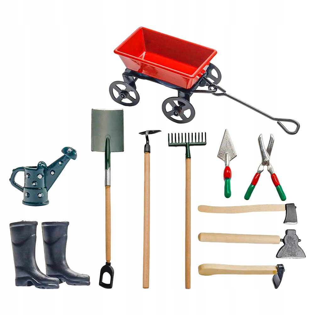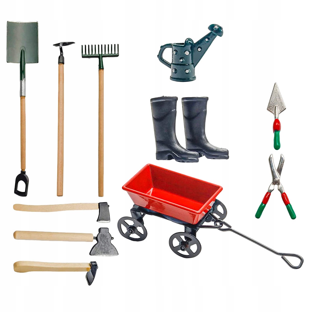 ✅1 x Пара мініатюрних взуття, 3 x Мініатюрні сільськогосподарські інструменти, 3 x Мініатюрні інструменти, 1 x Мініатюрна коляска, 3 x Мініатюрні інструменти садівництва