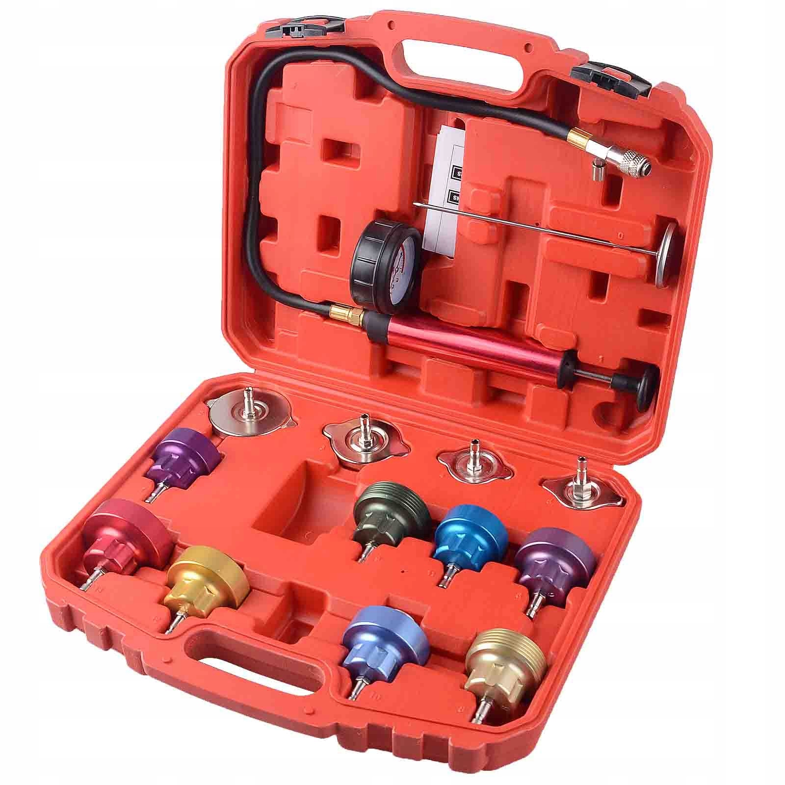 Набір включає в себе ручний насос у полі 0-35 фунт/кв.дюйм, 12 адаптерів алюмінієвих радіаторів, термометра, індивідуально відповідного корпусу Тестер допомагає виявити внутрішні та зовнішні витоки.