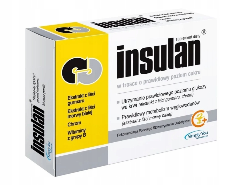 insulan® - це дієтична добавка, інгредієнти якої підтримують нормальний метаболізм вуглеводів (екстракту листя білого шовковиця), допомагають підтримувати нормальну глюкозу в крові (екстракт листя Гурмара та хром) і сприяти зменшенню апетиту до солодощів (екстракту листя Гурмара). Вітаміни В6, В12 та фолієва кислота допомагають підтримувати належний метаболізм гомоцистеїну, сприяти зменшенню відчуття втоми та втоми та підтримці нормальних психологічних функцій. Крім того, вітаміни В6 і В12 сприяють підтримці належного енергетичного обміну.