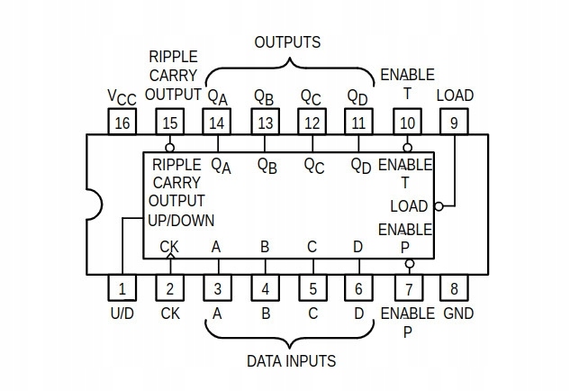 Інтегрована схема 74LS669: 4-бітний лічильник вгору/вниз, DIP16
