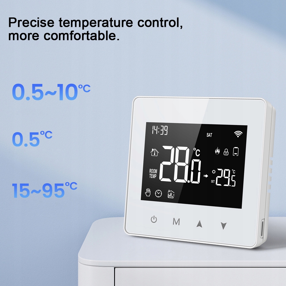 Це спеціальний термостат для газового котла. Простий монтаж і контроль температури зроблять ваше життя комфортним. (Примітка: має бути включено до шлюзу Zigbee, не додавайте шлюзи Zigbee. )