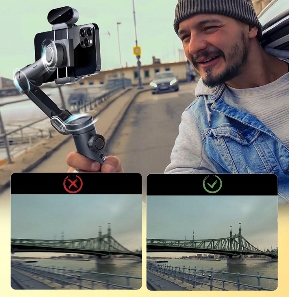 ✅ [4 зручні режими стабілізації]: Smart XE пропонує чотири зручні режими позитивної стабілізації: "f"/"pov"/"dm"/"go". "F" режим використовується для натискання кнопки та руху камери навколо, режим "POV" для фотографування з точки зору схильності, режиму "DM" в режимі "Inception" та режим "Go" для руху камери в перехідному режимі. Він зберігає будь -які дані в хмарі. Додаток має багато режимів відстеження та спеціальних функцій, таких як режим плівки, панорамні, фотографії -кадри, хічкок, фотографії в повільному русі тощо, які можна записати та взяти з одним клацанням.