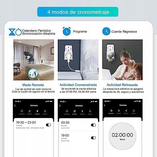 Програмований: Ви можете запрограмувати розетку Wi -Fi відповідно до ваших власних потреб, внаслідок чого пристрої, що підключаються до джерела, передадуть своє джерело в потрібний час. Наприклад, ви можете спланувати експлуатацію очищувача повітря о 10:00 до 14:00, змусити вбивцю комара платити за дві години або увімкнути пристрій о 8:00.