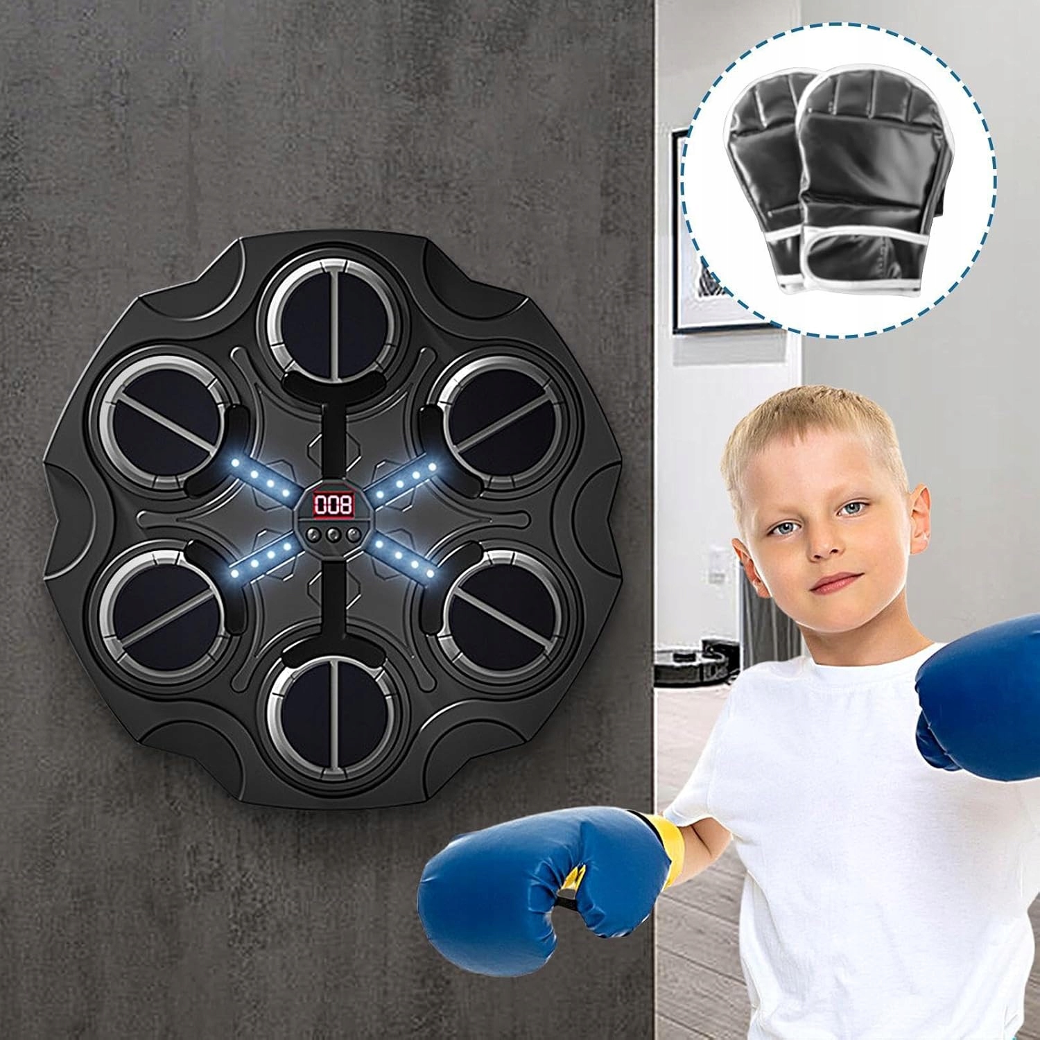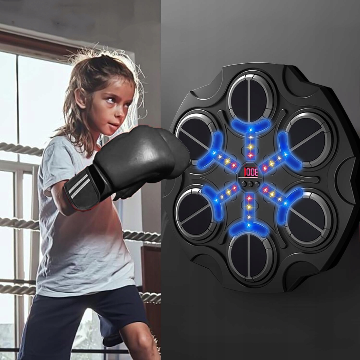 🥊 Вражаюча поверхня виготовлена з високо еластичної губки, яка має хорошу еластичність та подушки, зменшуючи травми руки під час тренувань. Синхронізований з музикою, вогні змінить колір після удару, створюючи стимулюючий візуальний досвід.