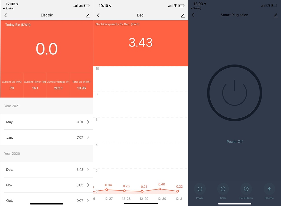 Пристрій має функцію контролю поточного споживання енергії, тому ви можете постійно перевіряти, скільки енергії було спожито пристрій, підключений до розетки. Дані вимірювань зберігаються на сервері Tuya, щоб ви могли перевіряти рівень споживання щодня або щомісяця та відстежувати параметри споживання на графіках.
