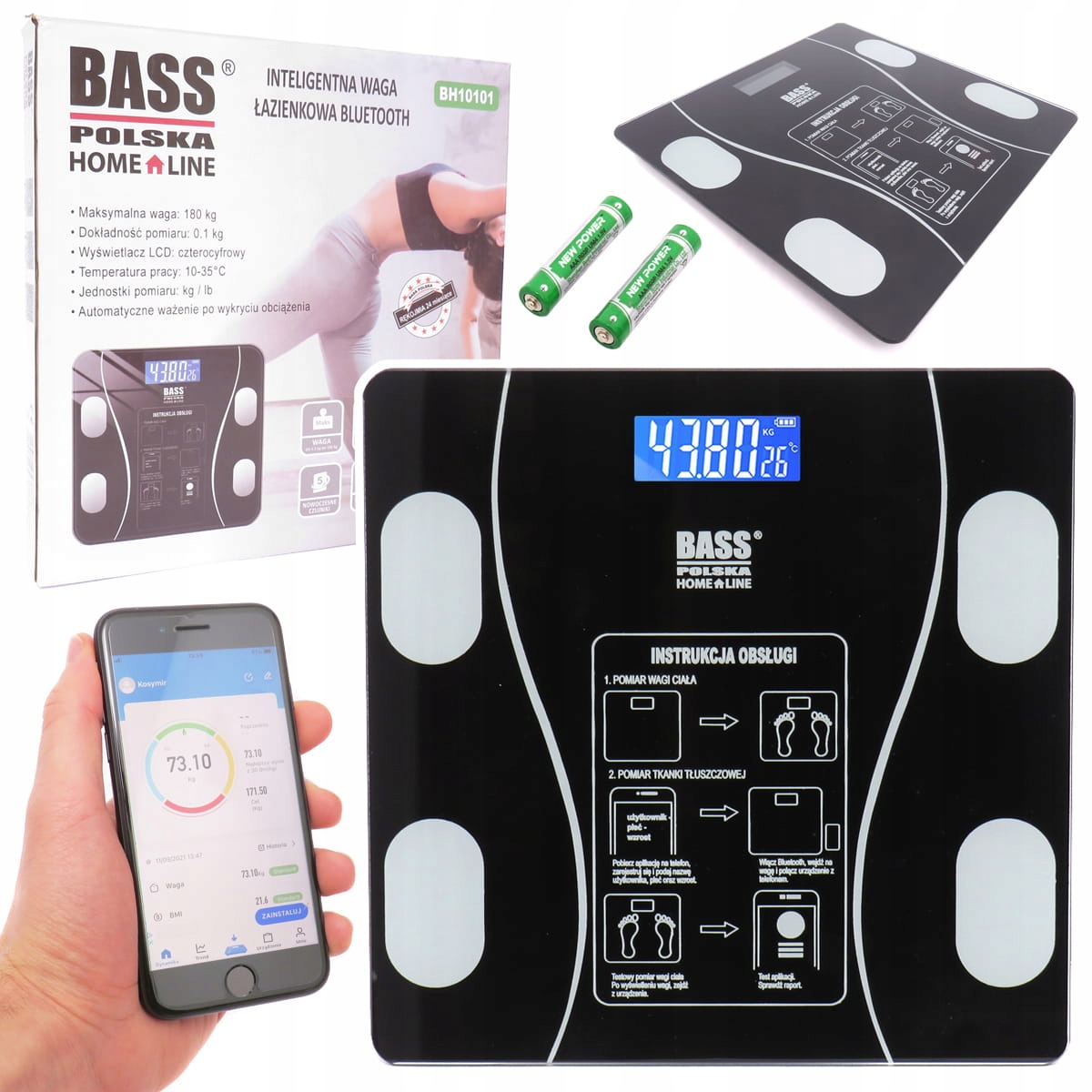 ✅ Bass Bass Polsk Basic з мінімумом 2,5 кг та максимум 180 кг дозволить Вага дозволяє використовувати вагу з міжнародним додатком Okok. 10 ° C - 35 ° C