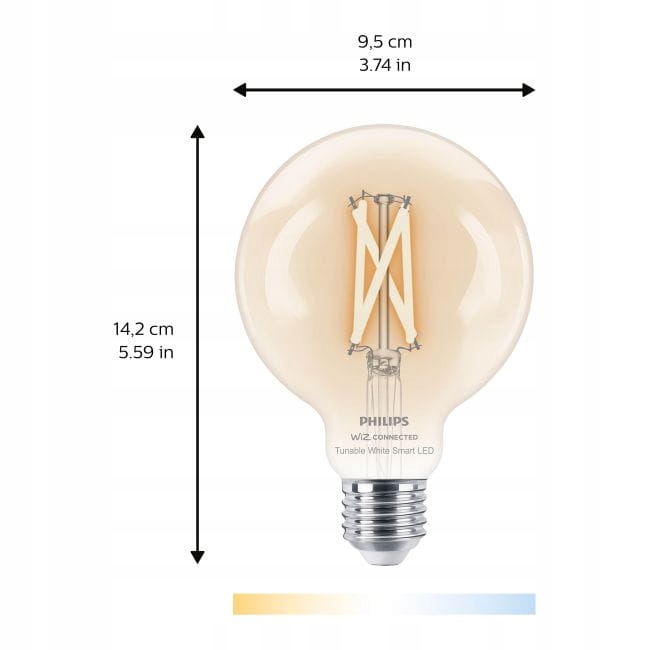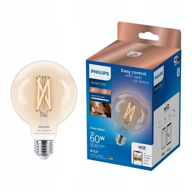 світлодіодний Smart Philips G95 E27 буде використовуватися у спальні та вітальні. Ви можете адаптувати світло до діяльності. Ви можете потемніти або змінити їх колір. Все, що вам потрібно зробити, це використовувати програму або контроль голосу. Це буде не лише функціональним, але й естетичним елементом розташування. Параметри логістики