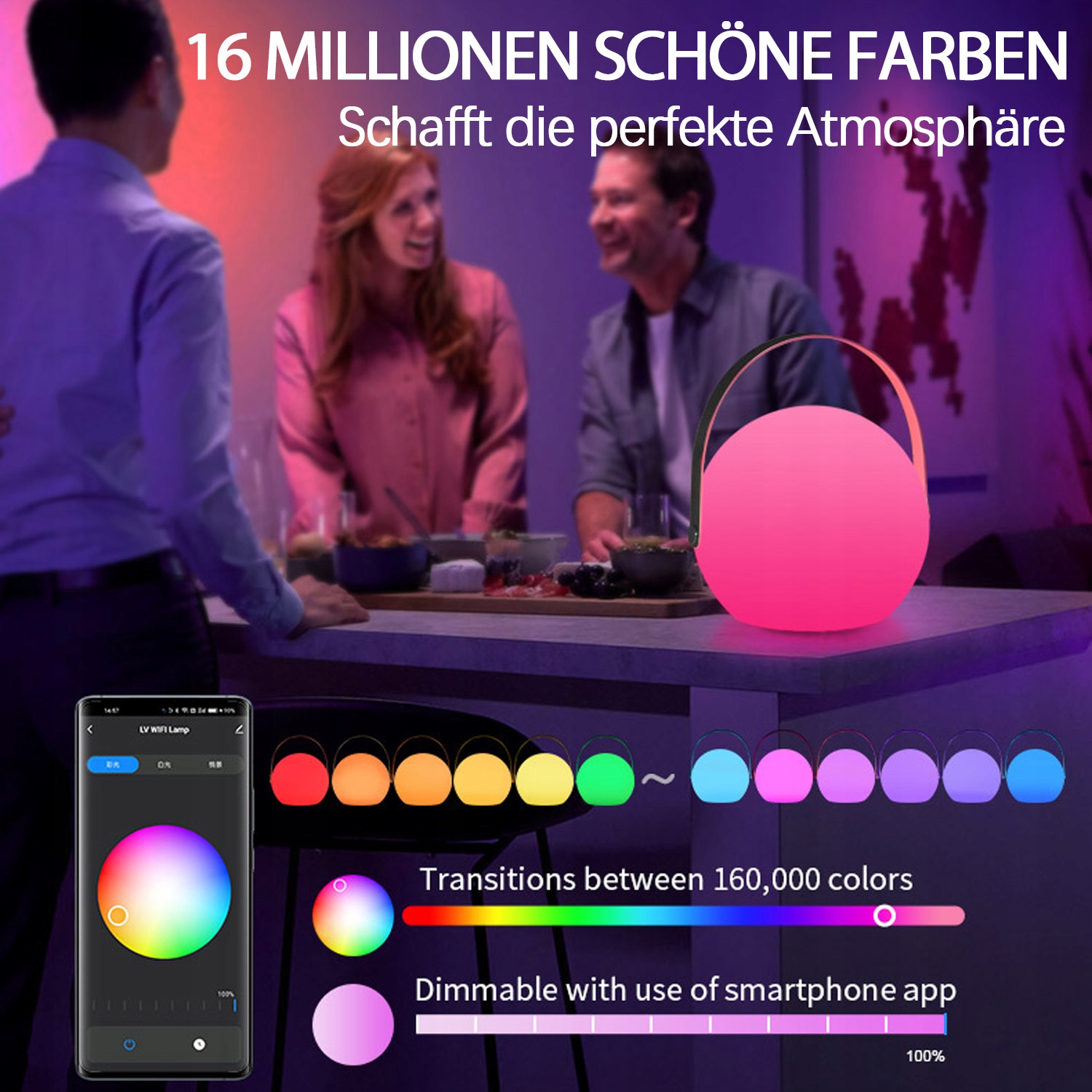 Ця інтелектуальна настільна лампа в стилі сферичного зберігача маяка підтримується як Bluetooth, так і Wi -Fi. Він сумісний з Android та iOS. Ця інтелектуальна настільна лампа в стилі сферичного зберігача маяка підтримується як Bluetooth, так і Wi -Fi. Він сумісний з Android та iOS. Лампа оснащена корисними функціями, такими як контроль програми, контроль голосу, затемнення, таймер, автоматизація та режими попередніх сцен для щоденних заходів та спеціальних моментів.