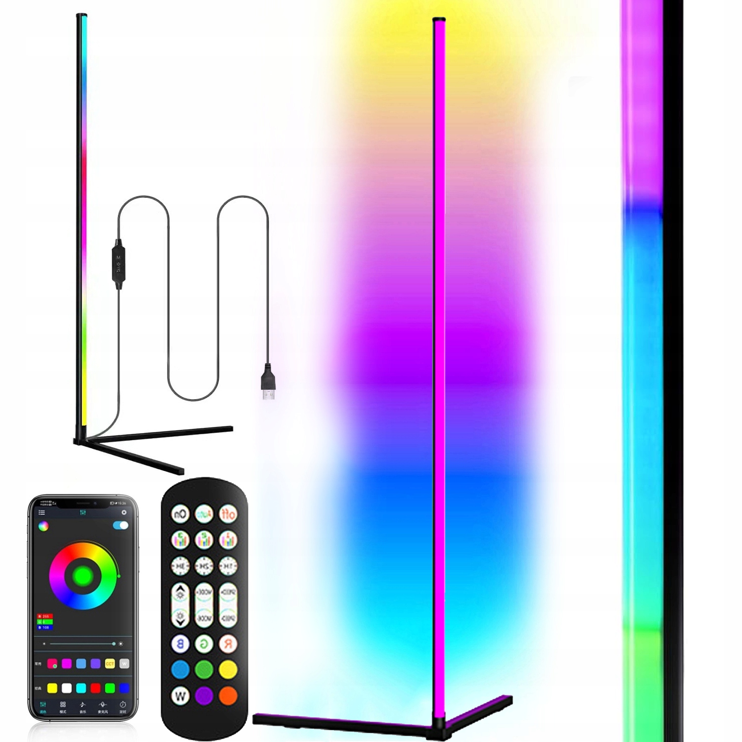 corner floor lamp, 155 cm Intelligent RGB LED floor lamp with RAINGEL application remote control, music synchronization, DIY mode, Timer, 16 million changing the color of standing lamps, dim -mood lighting to the living room, Bedroom