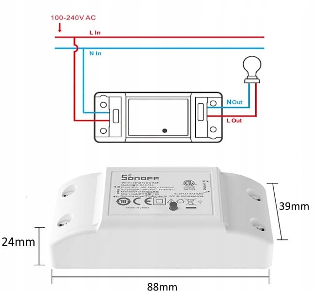 За допомогою цього пристрою ви можете легко вмикати та вимикати будь-які електричні пристрої, наприклад світло , вентилятори, опалення чи навіть кава, незалежно від того, де ви знаходитесь. За допомогою програми eWeLink, доступної для смартфонів із системами iOS та Android, користувачі можуть установлювати розклади, таймери та ділитися керуванням пристроями з іншими користувачами.