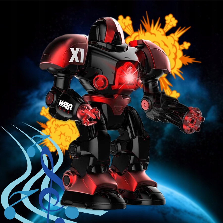 Інтерактивне робот має багато дивовижних функцій, таких як ходьба, поворот, танці та зйомка з пінопластовими кільцями. Під час гри ви можете організувати міні -змагання, що складається з зйомки з певною метою.
