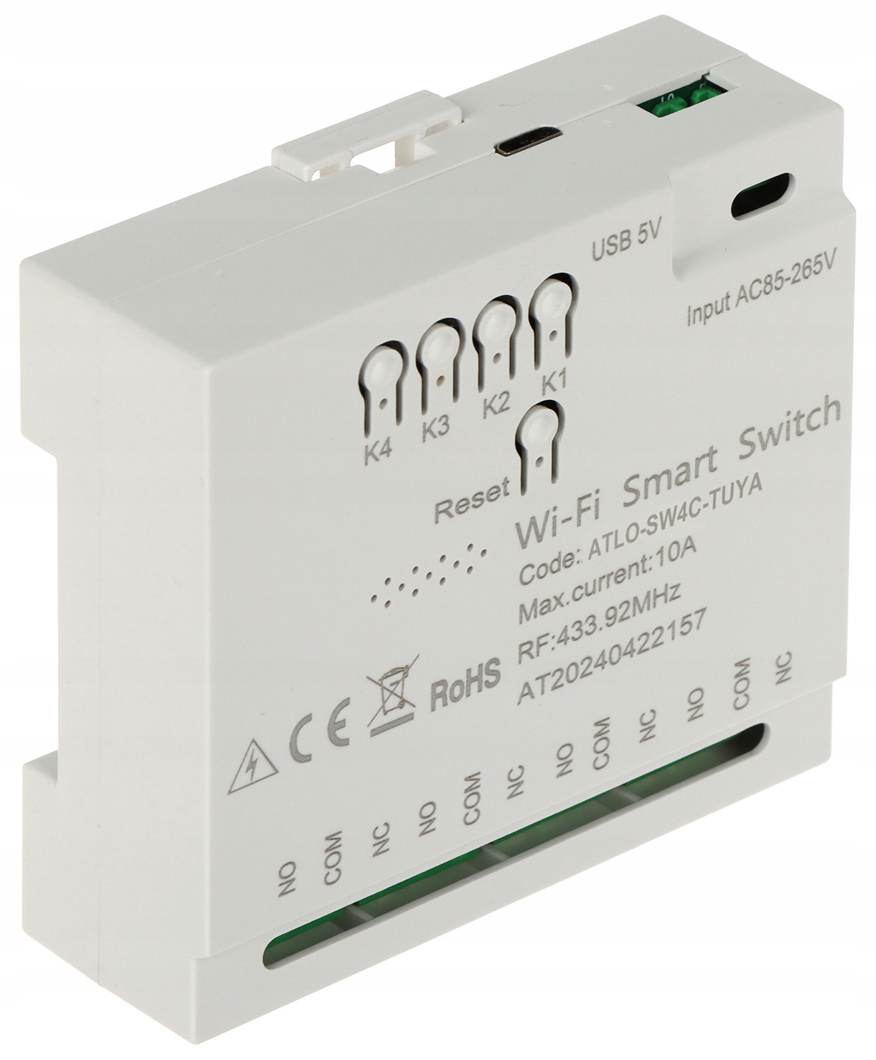 Інтелектуальний Wi-Fi Atlo-SW4C-TUYA Wi-Fi перемикач дозволяє керувати пристроями, підключеними до нього за допомогою мобільного додатка. Для належного функціонування пристрою необхідно підключити його до мережі Wi-Fi з доступом до Інтернету. На додаток до прямого управління, пристрій має можливість програмувати графік комутації та комутації та з'єднання з різними системними подіями. Голосовий контроль дозволяє керувати пристроєм через голосові команди від Amazon Alexa або Google Assistant (необхідний доступ до Інтернету). Tuya - це міжнародна платформа для дому, яка дозволяє інтегрувати тисячі продуктів різних виробників. Система може підтримувати всі найпопулярніші протоколи зв'язку, такі як Wi-Fi, Zigbee, Bluetooth. Увага! Налаштування керування пристроєм можливі, якщо пристрій має доступ до Інтернету.