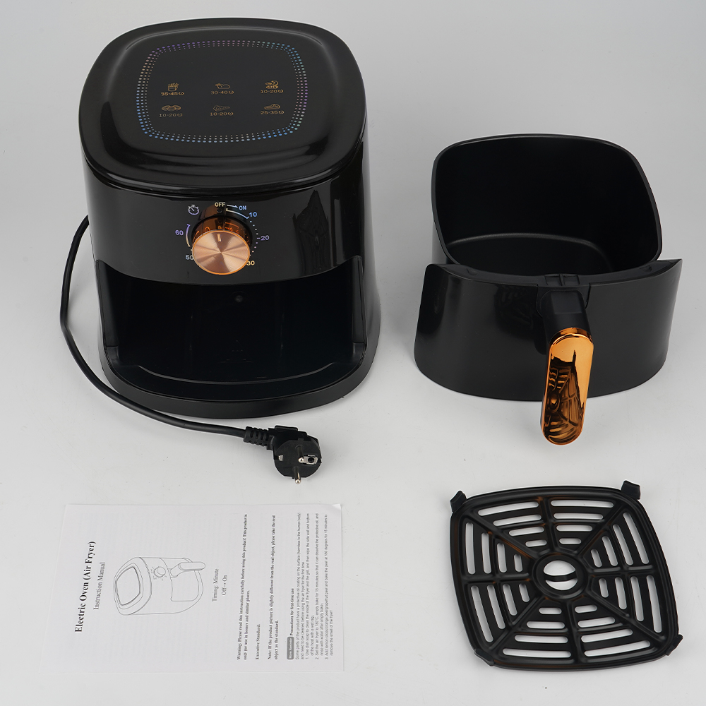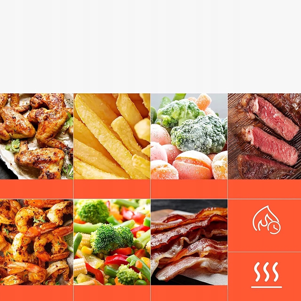 - Завдяки швидкому циркуляції повітря споживання жиру зменшується до 85%, зберігаючи смачну хрустку консистенцію. Легко чистити і повністю підходить для миття посудомийної машини, заощаджуючи час та енергію.