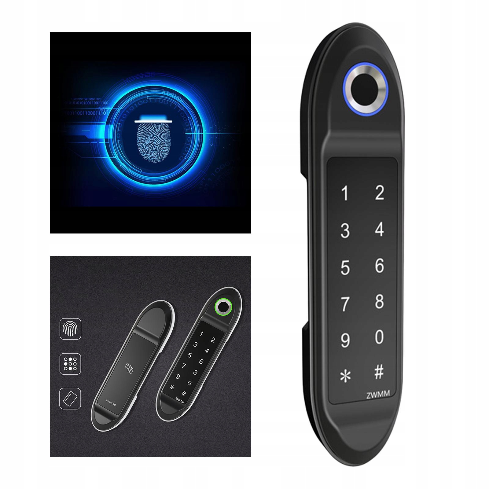 Інтелектуальний захист, 6 типів методів розблокування, розблокування з відбитком пальців, розблокування пароля, тимчасово розблоковано з відбитком пальців, розблокування з відбитком пальців + паролем, тимчасово розблоковано з розблокуванням пальців + пароля, метод розблокування може бути встановлений незалежним, незалежним режимом або комбінаційним режимом. Fingers Live жива Набір паролів управління, 200 наборів паролів користувача), введіть неправильний пароль 7 разів поспіль, клавіатура буде заблокована на 2 хвилини.