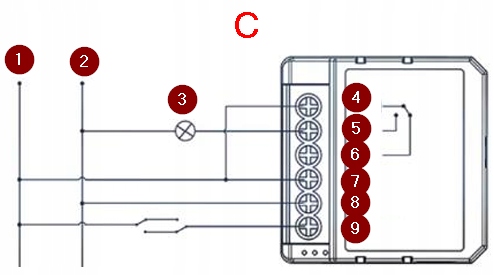 - Контроль за допомогою реле NC/NO - реле модуля не дає напруги. Коли модуль увімкнено програмою, перелічені контакти реле (якщо використовувались NO - зазвичай відкритий контакт) або відкриті (якщо контакт NC використовувався - як правило, закритий), залежно від методу з'єднання. Завдяки цьому модуль може бути використаний, наприклад, для управління відкриттям воріт або іншою системою, яка потребує безнадійного контролю (так -зведеного некостанційного контакту).