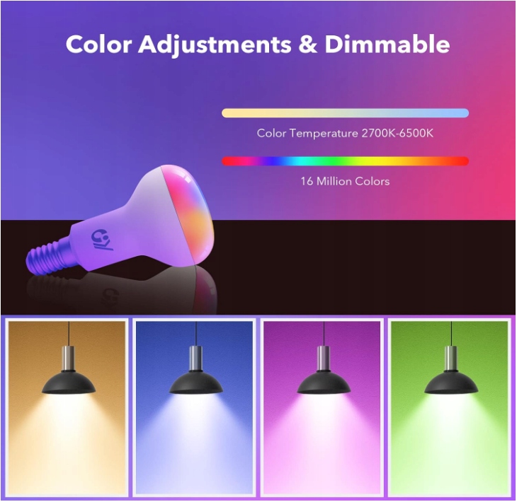 - Десять мільйонів варіацій кольорів: розумна лампочка з 16 мільйонами кольорів дозволяє вам вибирати та регулювати яскравість і насиченість, щоб запалити вашу уяву та створити найбільш підходящу кольорову гаму. Також можна використовувати як звичайну білу лампочку.