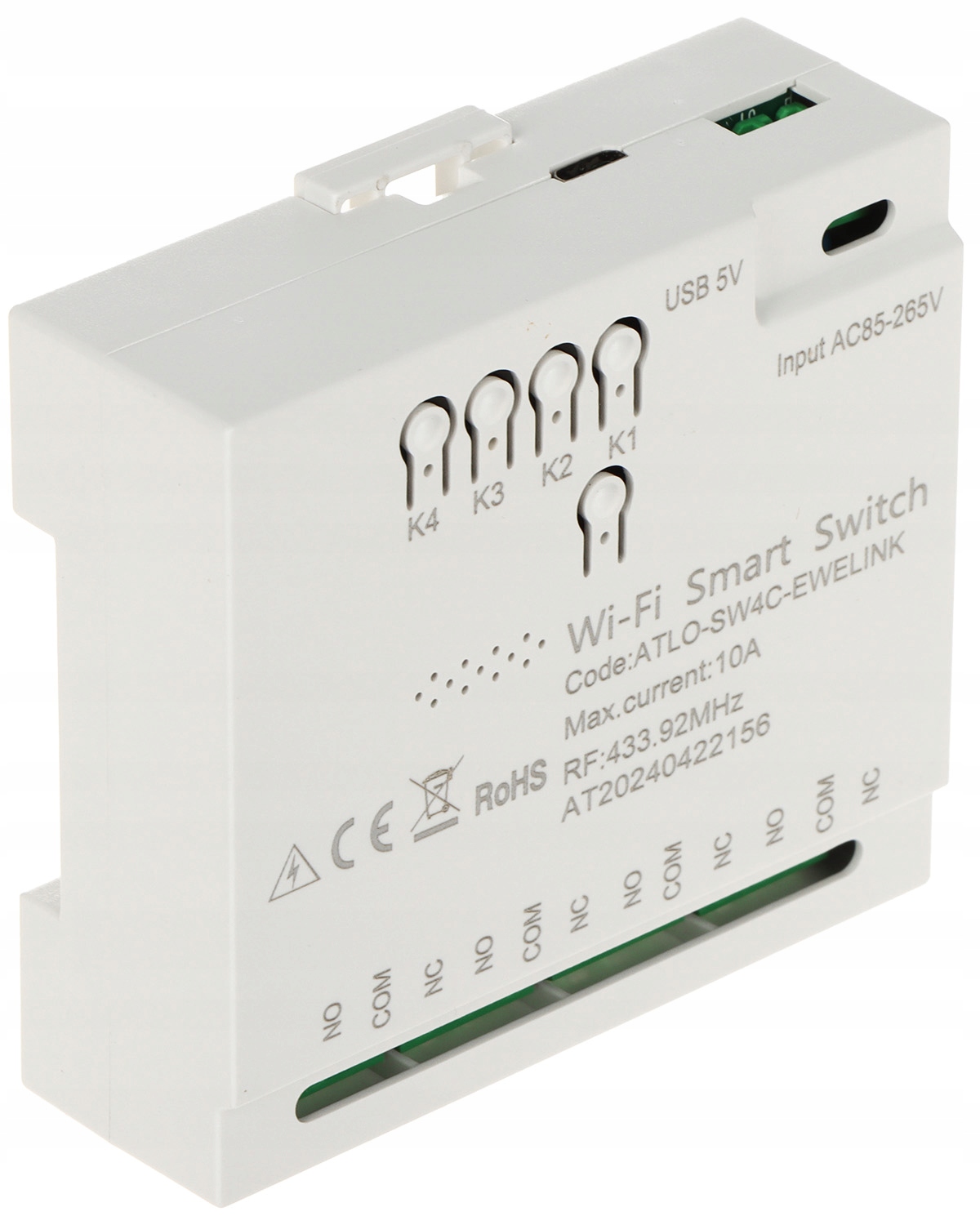 Інтелектуальний електричний комутатор Wi-Fi ATLO-SW4C-EWELINK дозволяє керувати підключеними до нього пристроями за допомогою мобільного додатку. Щоб пристрій працював належним чином, він має бути підключений до мережі Wi-Fi з доступом до Інтернету. Окрім прямого керування, пристрій можна запрограмувати за розкладом і поза ним, а також зв’язати з різними системними подіями. Голосове керування дозволяє керувати пристроєм за допомогою голосових команд за допомогою Amazon Alexa або Google Assistant (потрібен доступ до Інтернету). eWeLink — це міжнародна платформа домашньої автоматизації, яка дозволяє інтегрувати тисячі продуктів від різних виробників. Система може підтримувати всі найпопулярніші протоколи зв'язку, такі як Wi-Fi, Zigbee, Bluetooth. Увага! Управління пристроєм і налаштуваннями розкладу можливе, якщо пристрій має доступ до Інтернету.