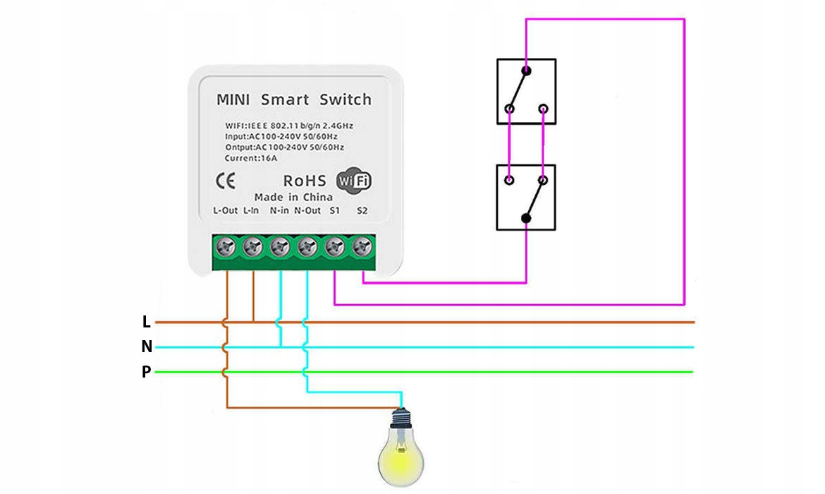 Модуль керування освітленням WiFi з дистанційним керуванням, до потужності до 3680 Вт для одного каналу та 280 Вт світлодіодна канал. Це дозволить вам керувати світлом під час підключення до мережі Wi-Fi або віддалено з будь-якої точки землі. Крім того, ви можете встановити розклад, функції таймера або секундоміра, які заощадять на рахунках за рахунок автоматичного вимкнення освітлення, а також інтелектуальні сцени, наприклад увімкнення кількох ламп в один і той же час або вимикання світла через встановлений час. Компактні розміри 41x41x20 мм також дозволять встановити його в коробку для прихованого монтажу (для зручності встановлення - рекомендуємо глибину 60 мм).
