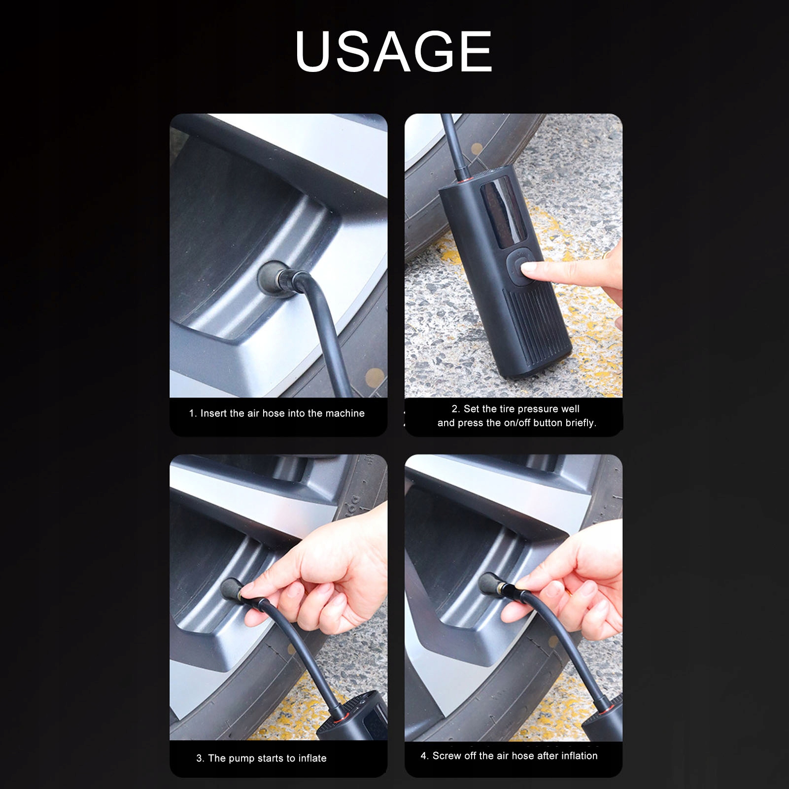 3. Маленький і портативний: цей компактний насос для надування повітря розроблений як портативний і легкий, тому його легко зберігати в автомобілі чи гаражі. Незалежно від того, чи перебуваєте ви в дорозі чи вдома, цей насос для накачування шин швидко й ефективно накачає ваші шини до потрібного тиску.